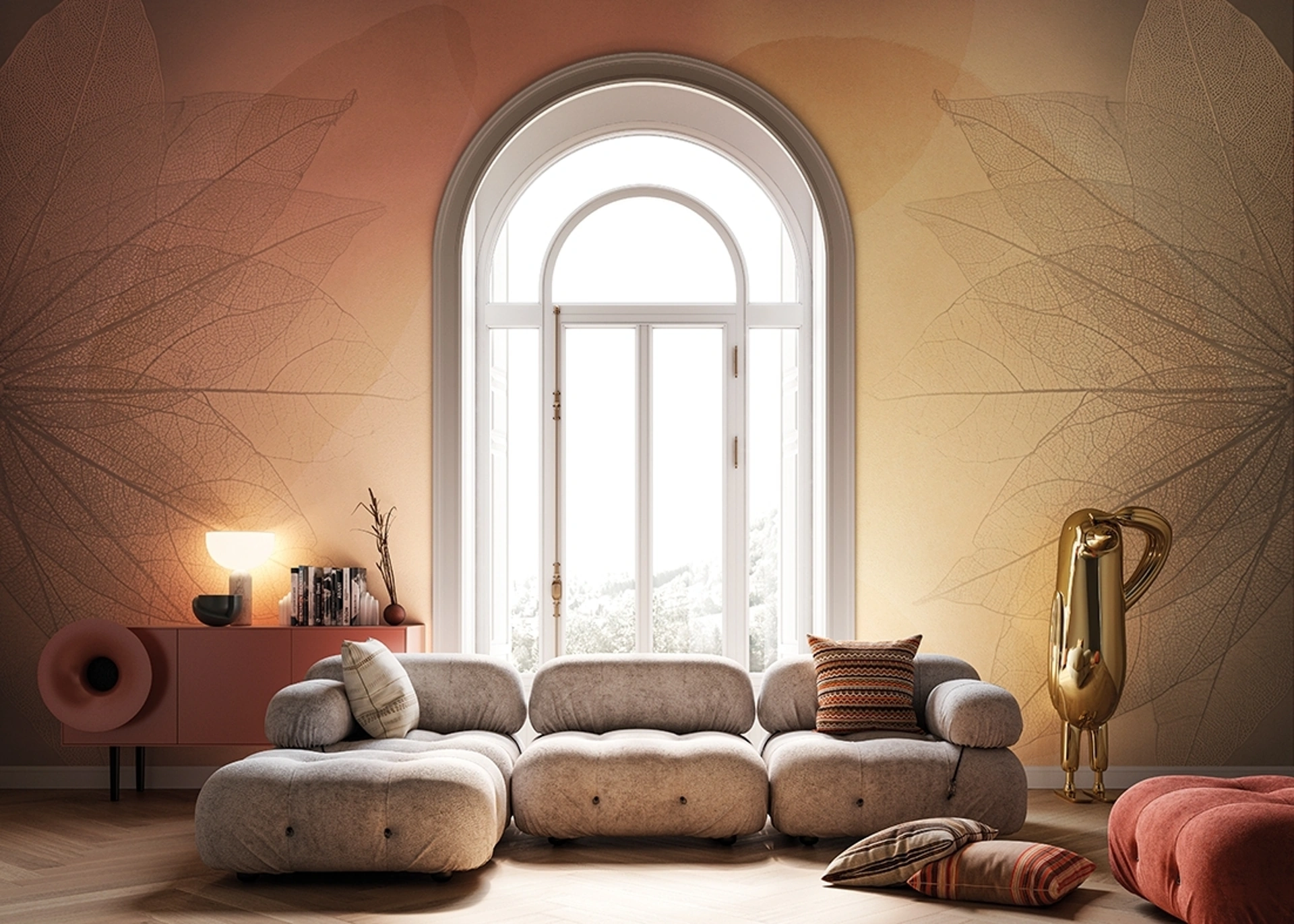 Carta da parati con foglie stilizzate Dharma