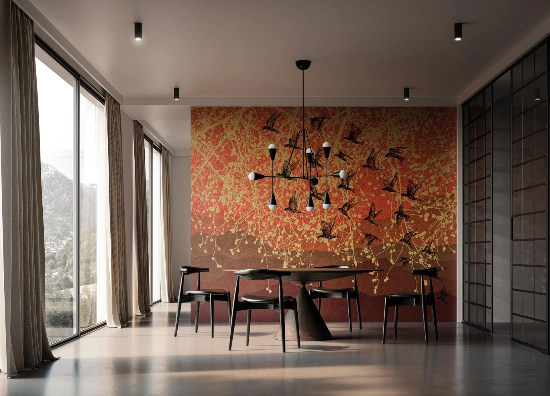 Valorizza i tuoi interni con la carta da parati decorativa Red Mountain di Instabilelab, un elemento di design che arricchisce ogni ambiente. Questa creazione della collezione 24K propone un suggestivo paesaggio di dune con tonalità calde e raffinate, dal rosso carminio al mattone, completato da rami dorati e un volo di uccelli neri. Offriamo un servizio completo di consulenza, progettazione e installazione, garantendo un risultato impeccabile. La consegna e il montaggio sono disponibili in diverse località, inclusi i comuni di Ferrara, Bologna. Il prodotto è realizzato con l'esclusivo materiale Prestige, disponibile in Oro e Oro Rosa, con una lamina d'oro che aggiunge riflessi iridescenti e un tocco di lusso. Ogni carta da parati è prodotta su misura, assicurando una perfetta integrazione con le dimensioni della tua parete. Questa soluzione non è solo estetica, ma supportata da una garanzia completa e un servizio di assistenza che ne assicura la perfetta funzionalità nel tempo.