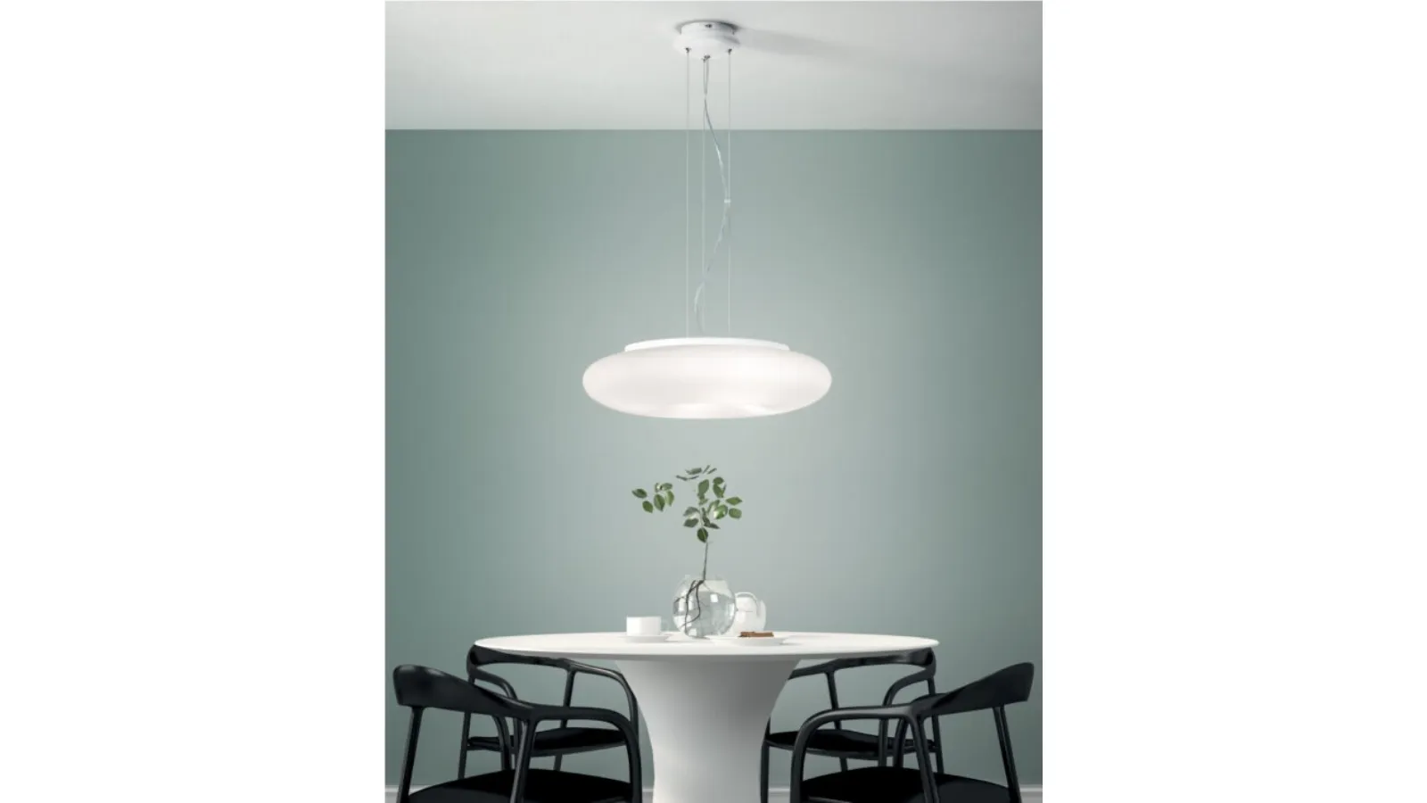 | Materiale: | Vetro soffiato bianco satinato, metallo bianco. |