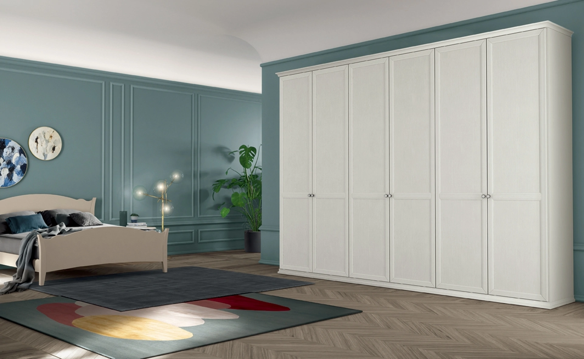 Quali sono le caratteristiche principali dell'armadio Arcadia AM018 di Colombini Casa?L'armadio Arcadia AM018 offre soluzioni versatili per l'organizzazione interna, con diverse configurazioni di ripiani e tubi appendiabiti. È progettato per adattarsi a vari stili d'arredo, garantendo funzionalità e design.