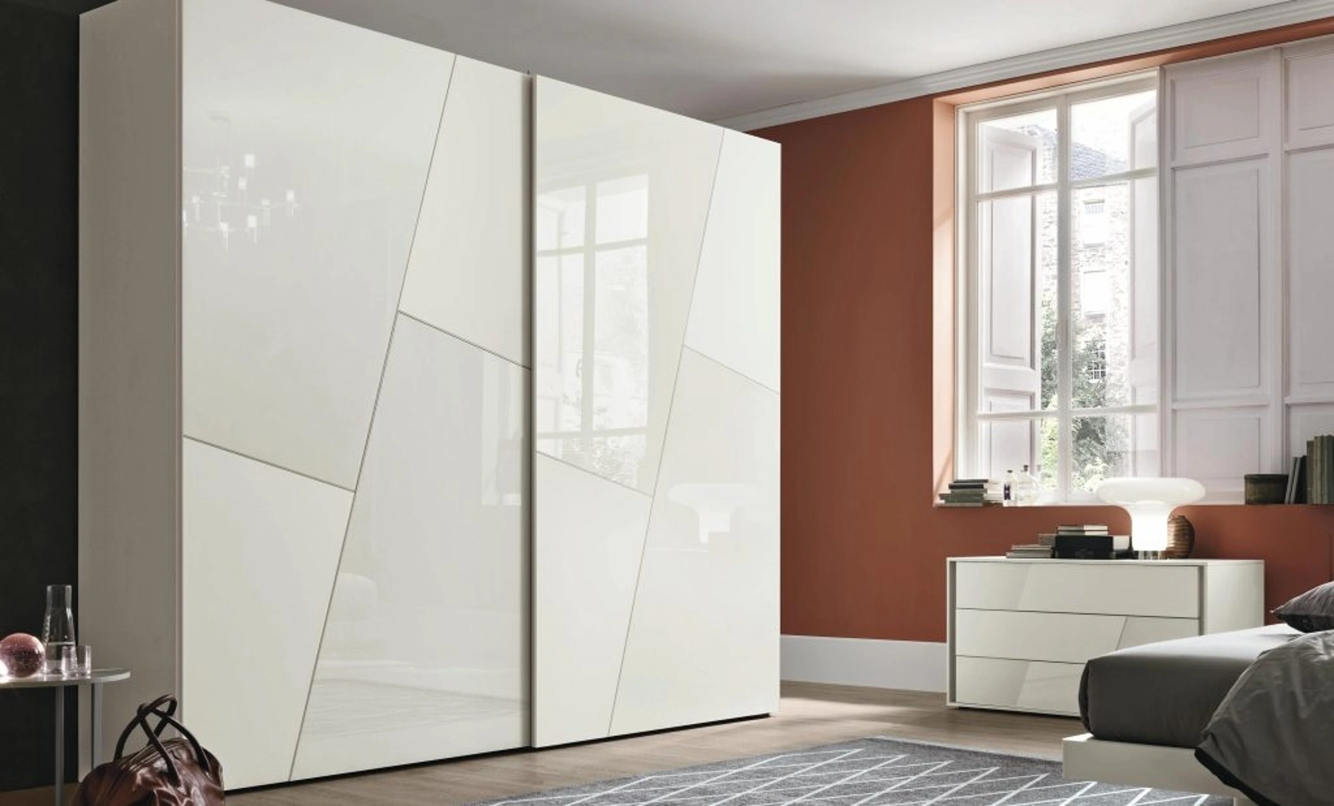 Armadio con ante scorrevoli di design in laccato opaco e vetro