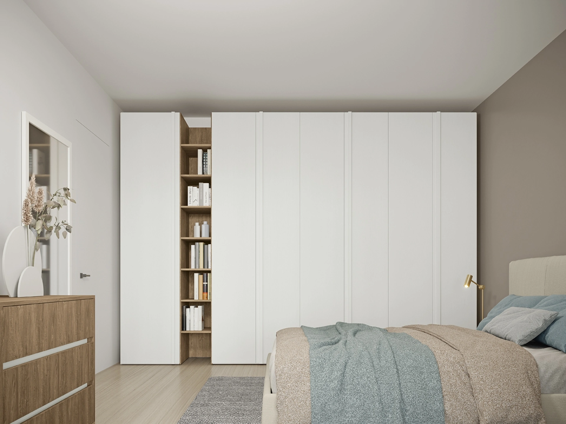 Quali sono le opzioni per l'organizzazione interna dell'armadio Volo A003?L'armadio Volo A003 può essere personalizzato con diverse configurazioni interne, includendo ripiani, cassetti e tubi appendiabiti. La progettazione 3D ci permette di ottimizzare lo spazio per le tue esigenze.