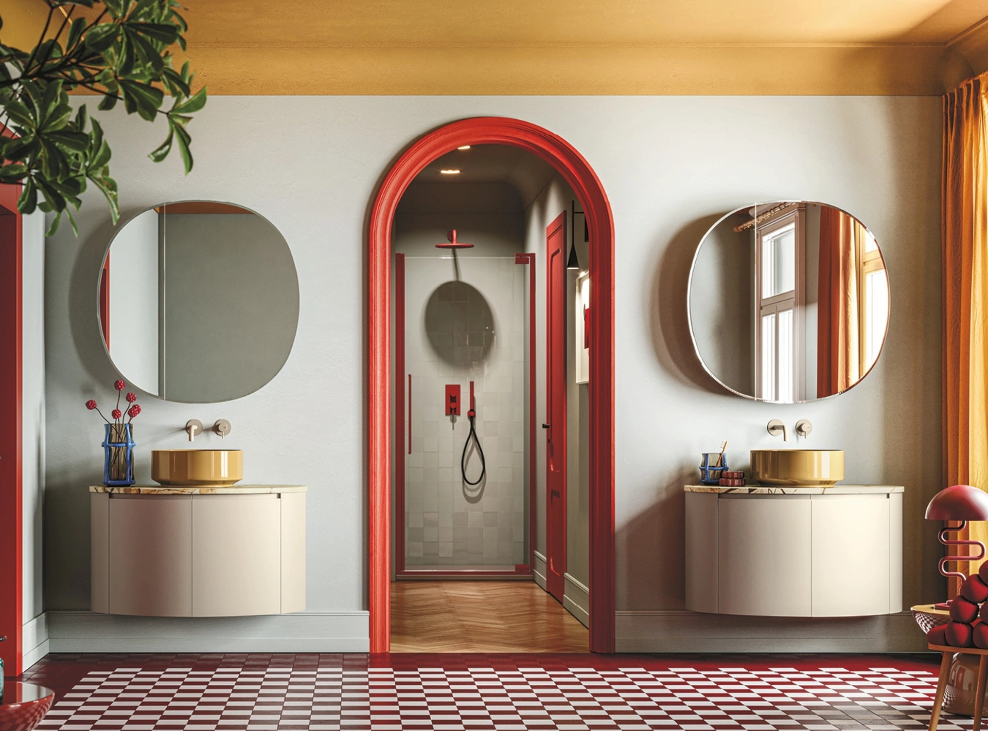 La composizione Fusion 41 di Arbi Arredobagno è l'espressione di un design ricercato, focalizzato sull'armonia tra forme e funzionalità. La serie Fusion di Arbi Arredobagno si caratterizza per un design dalle forme fluide e avvolgenti, proponendo soluzioni d'arredo bagno che fondono l'eleganza delle basi curve con la precisione delle colonne e dei vani a giorno. La specifica configurazione Fusion 41 offre una notevole larghezza di 178 cm (risultato di due moduli da 89 cm) e una profondità modulabile da 37 a 50 cm. L'integrazione con lavabi Smart 38, rubinetteria Geko e specchiere Almond permette di configurare un ambiente bagno altamente funzionale, accogliente e versatile, adatto a ogni preferenza stilistica. I materiali impiegati per questa collezione spaziano da legni selezionati (ingegnerizzato, laminato, nobilitato, olmo) a innovativi materiali sintetici (melamina, Ocritech, Fenix-NTM®), pregiati marmi (Calacatta Oro, Rojo Levanto, Fior di Pesco Carnico), quarzite, ceramiche di alta qualità (gres porcellanato, Laminam®), fino a finiture in pelle ed ecopelle. L'eccellenza materica è garantita, con un'ampia gamma di finiture innovative esplorabili per personalizzare ogni dettaglio e assicurare prestazioni durature.
