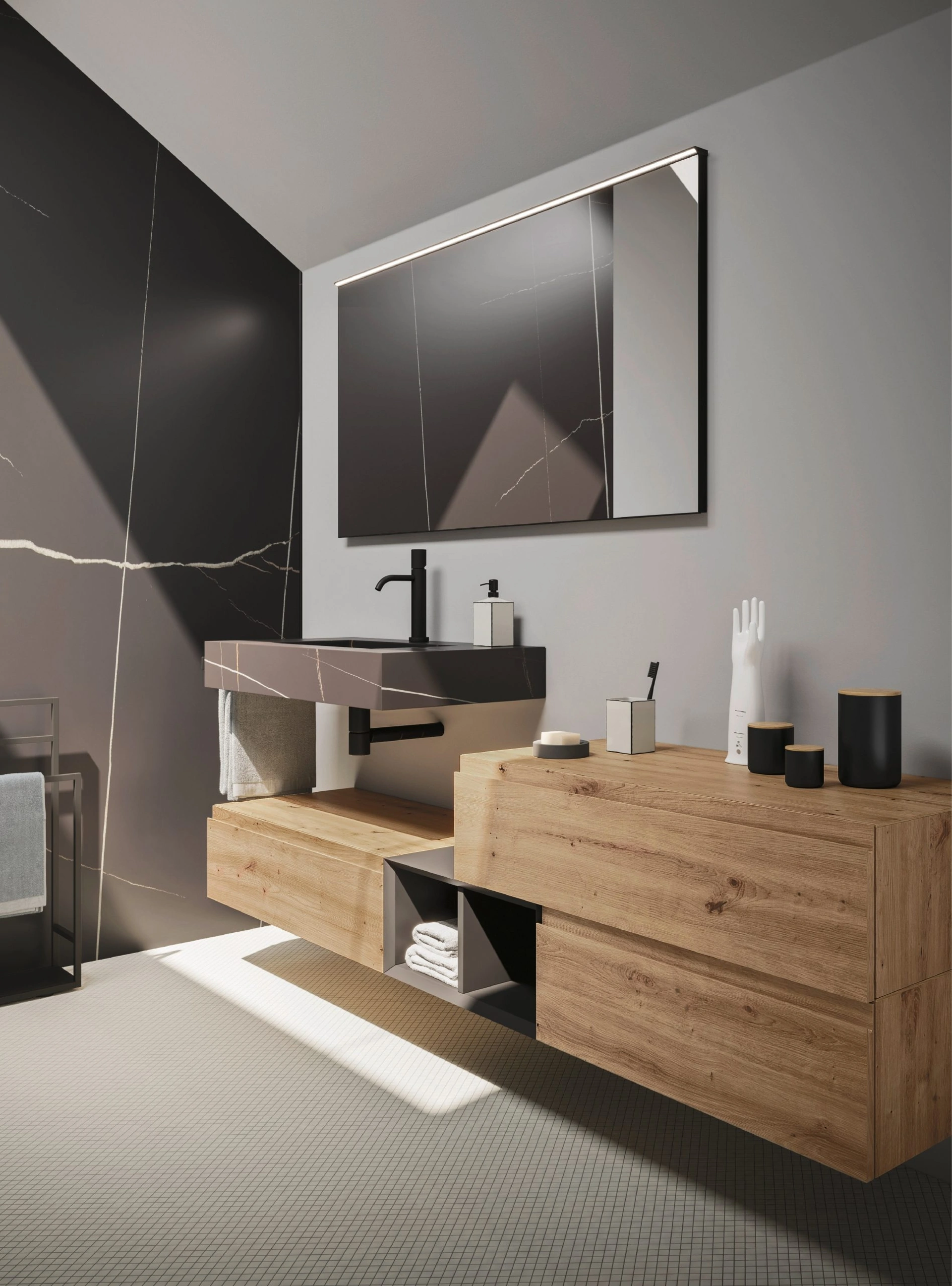 La stanza da bagno oggi non è più solamente un locale di servizio: alla sua progettazione viene dedicata la medesima cura degli altri ambienti domestici. Le proposte del conosciuto brand sono sempre realizzate in finiture di pregio, capaci di resistere negli anni all'azione di vapore acqueo e sostanze chimiche. In showroom troverai non solo wc e bidet, ma anche tutti gli altri accessori inclusi nel concept per il bagno: scopri le più esclusive proposte di mobili bagno sospesi. Il modello di Mobile da Bagno Ho-me plus J 42 di Arbi in melaminico ultima il locale mixando alla perfezione doti di classe con funzionalità ed ergonomia. Nel nostro showroom ti mostreremo varie proposte di composizioni by Arbi per ammobiliare l'ambiente di casa dedicato alla cura della propria persona.