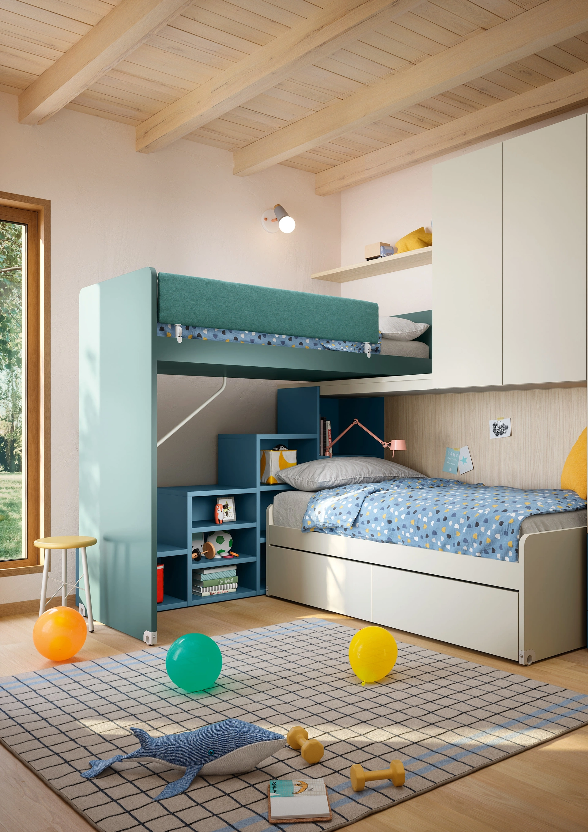 Con la Cameretta Soppalco Scorrevole Slide di Nidi in melaminico ti assicurerai un perfetto connubio di ergonomia e sicurezza, ideale per la stanza dei tuoi figli. I nostri bambini passano gran parte del giorno nelle loro camere da letto: rendile adatte per studiare, giocare e riposare quotidianamente. Presentiamo in negozio diverse Camerette a soppalco moderne per bambine del brand, ideali per seguirli durante la loro crescita. Le Camerette dei nostri figli sono l'ambiente in cui diventeranno grandi divertendosi e sognando, perciò è essenziale che lo spazio sia funzionale.