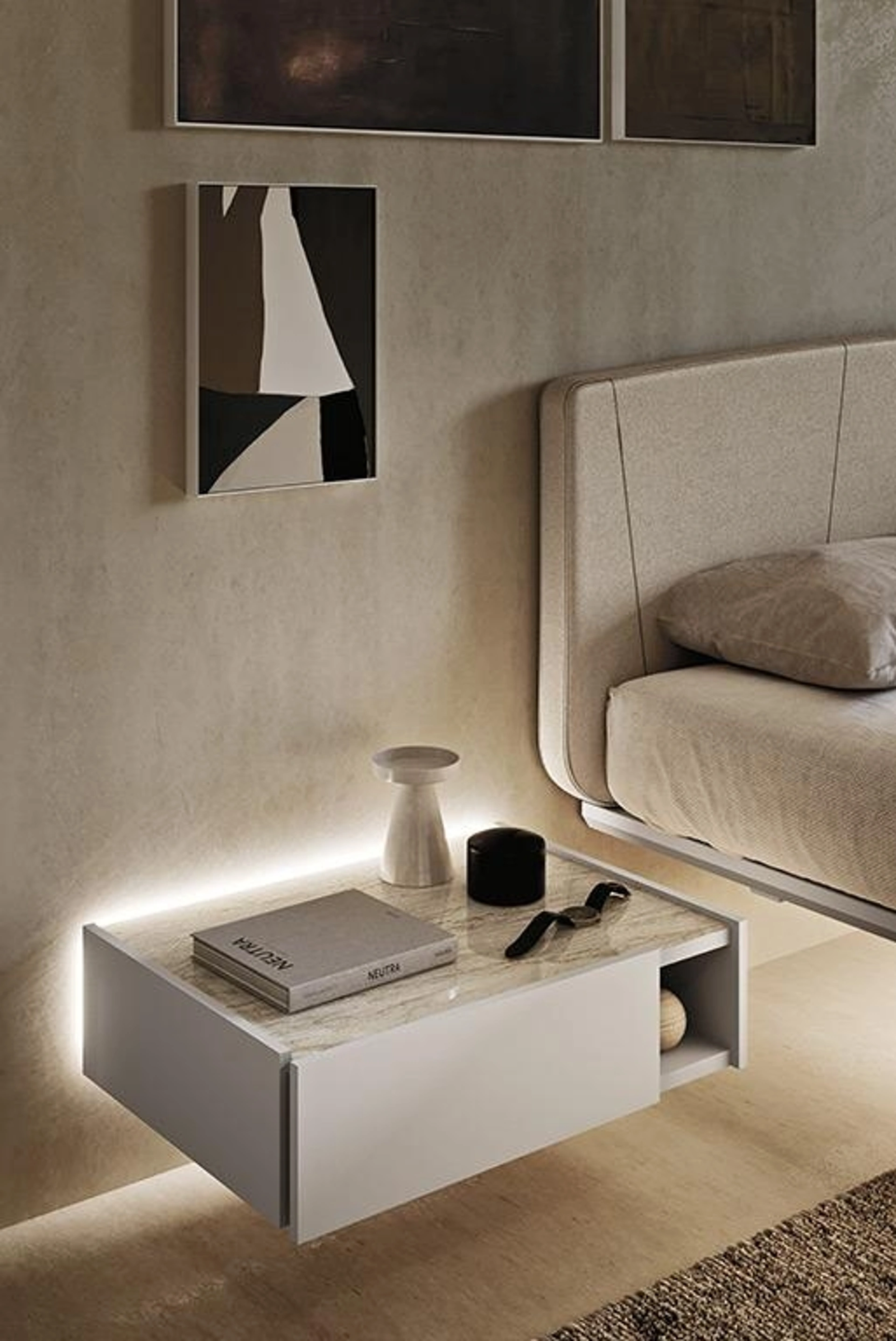 I Comodini sono mobili e complementi capaci di ultimare la camera da letto assicurando un'area di appoggio per certo utile e eclettico. Ti domandi come abbinare letti, armadi e comodini? Con il modello di Mobilgam mostrato in foto avrai un arredo adatto a uno spazio dai richiami moderni.