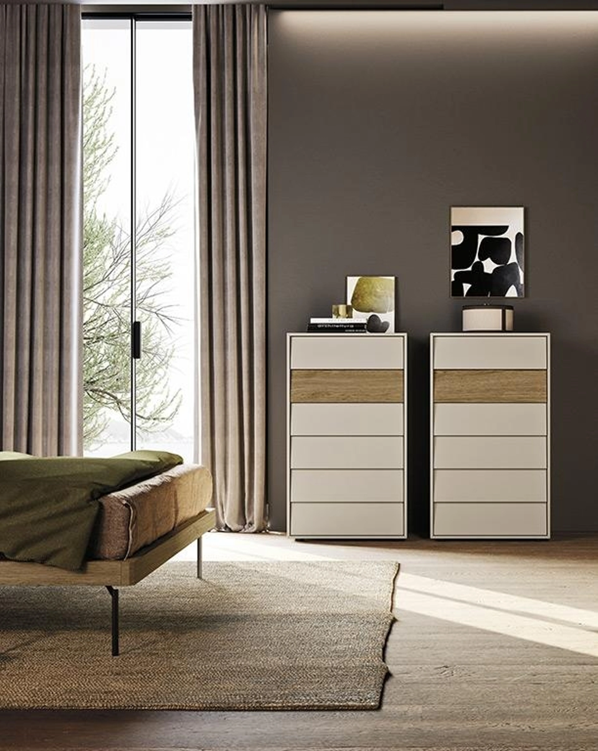 Valorizza i tuoi interni scegliendo composizioni di oggetti abbinati o ricrea inediti accostamenti di stile e tonalità grazie al catalogo di mobili ed elementi accessori per la camera da letto che proponiamo, come il modello in laccato opaco presente in foto, anche realizzabili su misura. La camera da letto comprende anche i Comodini: arredi contenitivi d'uso quotidiano che permettono di ordinare piccole cose e potere ususfruire di superfici di appoggio per vari utilizzi. Con i nostri gruppi notte moderni dell'azienda Mobilgam, specialista dell’Arredamento Casa per la camera da letto, potrai creare la zona notte che hai sempre sognato.