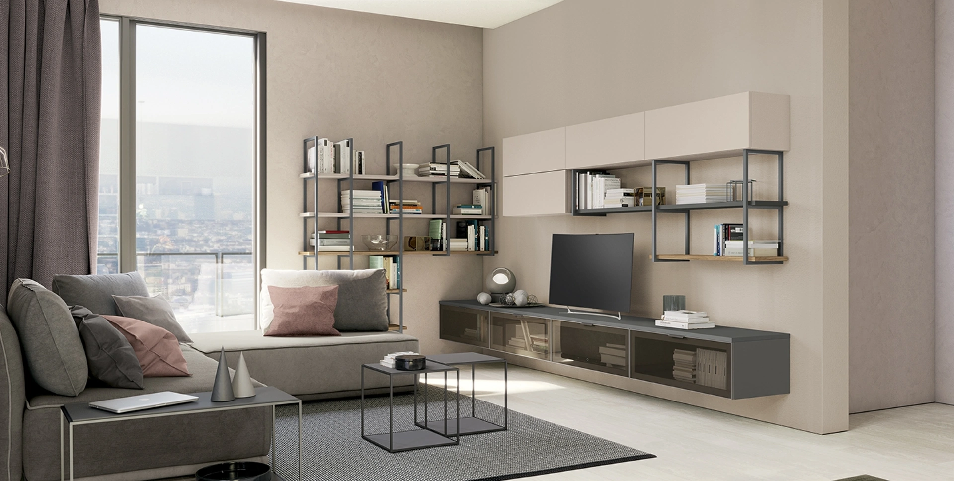 Il living è, per eccellenza, la zona della casa in cui ci dedica al relax ogni giorno, chiacchierando con familiari e amici, riposando in solitudine o guardando la televisione. Contattaci per info e preventivi sul modello presente in foto: se desideri ultimare stanze moderne, allora questa libreria dalle linee decise fa per te. Le Librerie moderne sono sempre molto gradite per organizzare la zona giorno e i muri, mixando alla perfezione doti di praticità e design. La Libreria Golf Up&Up A03 di Colombini Casa in foto, nella variante in metallo, è davvero versatile e funzionale, robusta e durevole, nonché personalizzabile secondo le più personali esigenze abitative.
