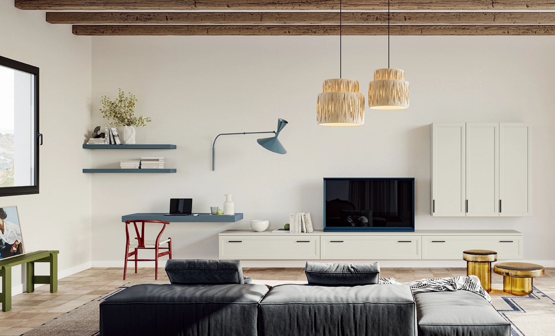 Quali opzioni di composizione offre la parete attrezzata Arcadia AS002?La parete attrezzata Arcadia AS002 di Colombini Casa è modulare e permette diverse configurazioni con basi, pensili, colonne, mensole a giorno e moduli TV. Puoi personalizzarla per adattarla al tuo spazio.
