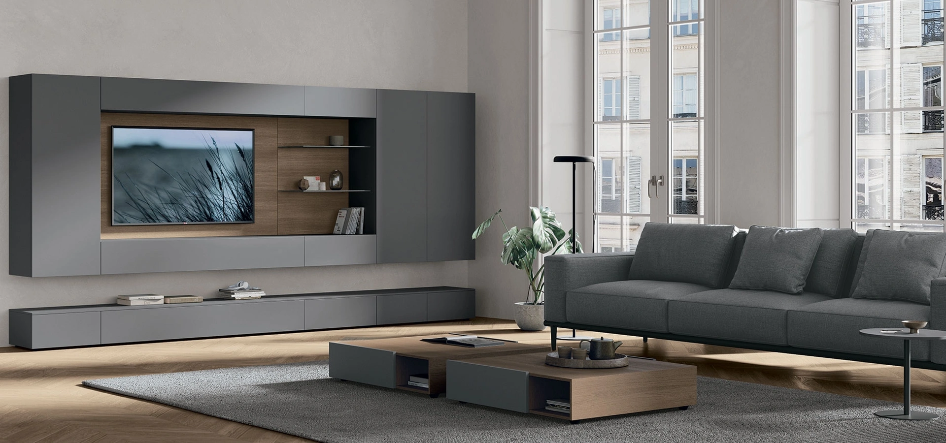 È possibile personalizzare la composizione e le finiture della parete attrezzata Atlante UNIT AT143?Assolutamente sì, la linea Atlante è pensata per essere altamente modulare e personalizzabile. Puoi scegliere tra diverse finiture coordinate e configurazioni per adattarla perfettamente al tuo ambiente.