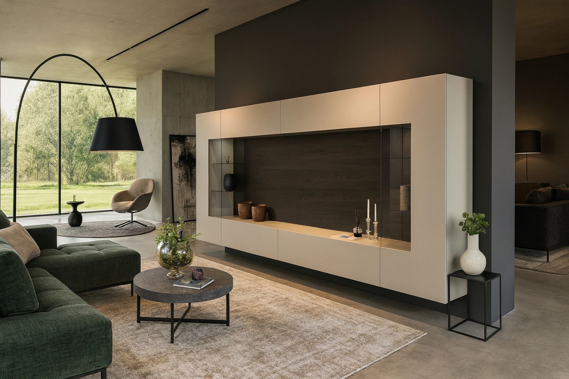 Parete Attrezzata Soggiorno con schienale Carbone di Voltan