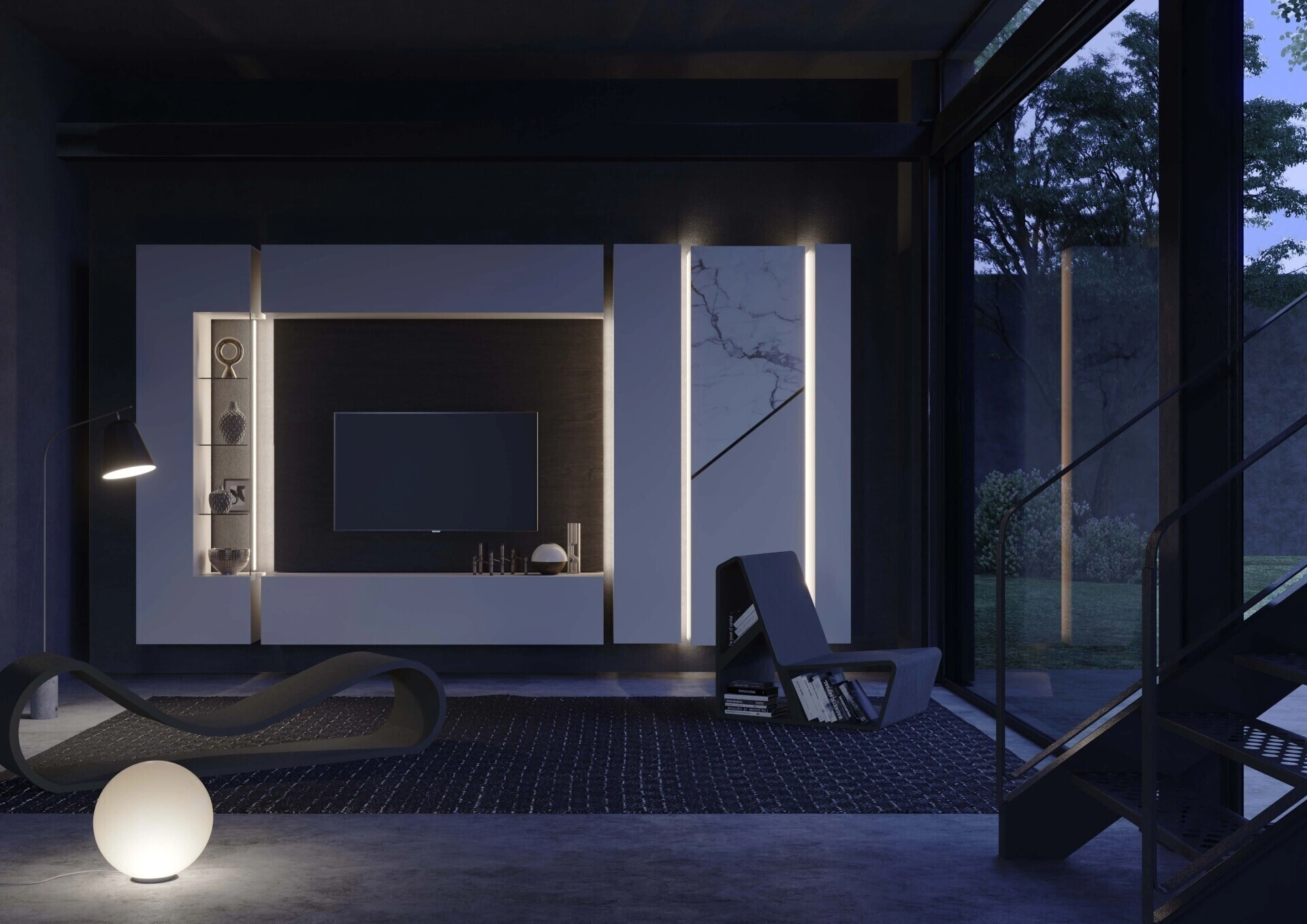 Quali sono le caratteristiche dell'illuminazione LED integrata nel Soggiorno Alicante?Il Soggiorno Alicante di Voltan integra un'illuminazione LED che valorizza gli elementi d'arredo e crea un'atmosfera accogliente. È pensata per unire estetica e funzionalità all'interno della tua parete attrezzata.