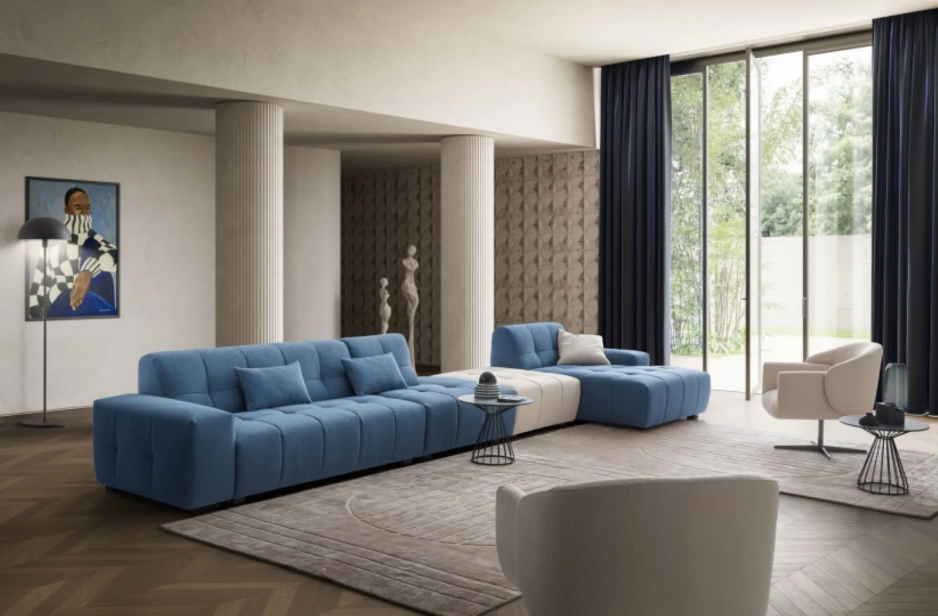 Il divano modulare Collins di Le Comfort è la soluzione perfetta per chi cerca un arredo che unisca estetica e funzionalità, supportato da un servizio completo. Le sue forme morbide e arrotondate si adattano splendidamente a ogni ambiente, e la sua configurazione modulare permette una personalizzazione approfondita per il tuo spazio, con il nostro supporto esperto in fase di progettazione. Le sedute in Memory Foam garantiscono un comfort elevato e duraturo, mentre il rivestimento completamente sfoderabile in tessuto o Texil semplifica notevolmente la pulizia e la manutenzione. Siamo orgogliosi di offrire un servizio professionale di consegna e montaggio, attivo nelle aree di Carpi, Mantova, Ferrara e dintorni, assicurando un'installazione impeccabile direttamente a casa tua. La robusta struttura, realizzata con masselli di abete e imbottiture in poliuretano espanso indeformabile, assicura la durabilità del prodotto. Per la tua tranquillità, garantiamo un'assistenza post-vendita dedicata e la disponibilità di ricambi per tutti i prodotti Le Comfort.