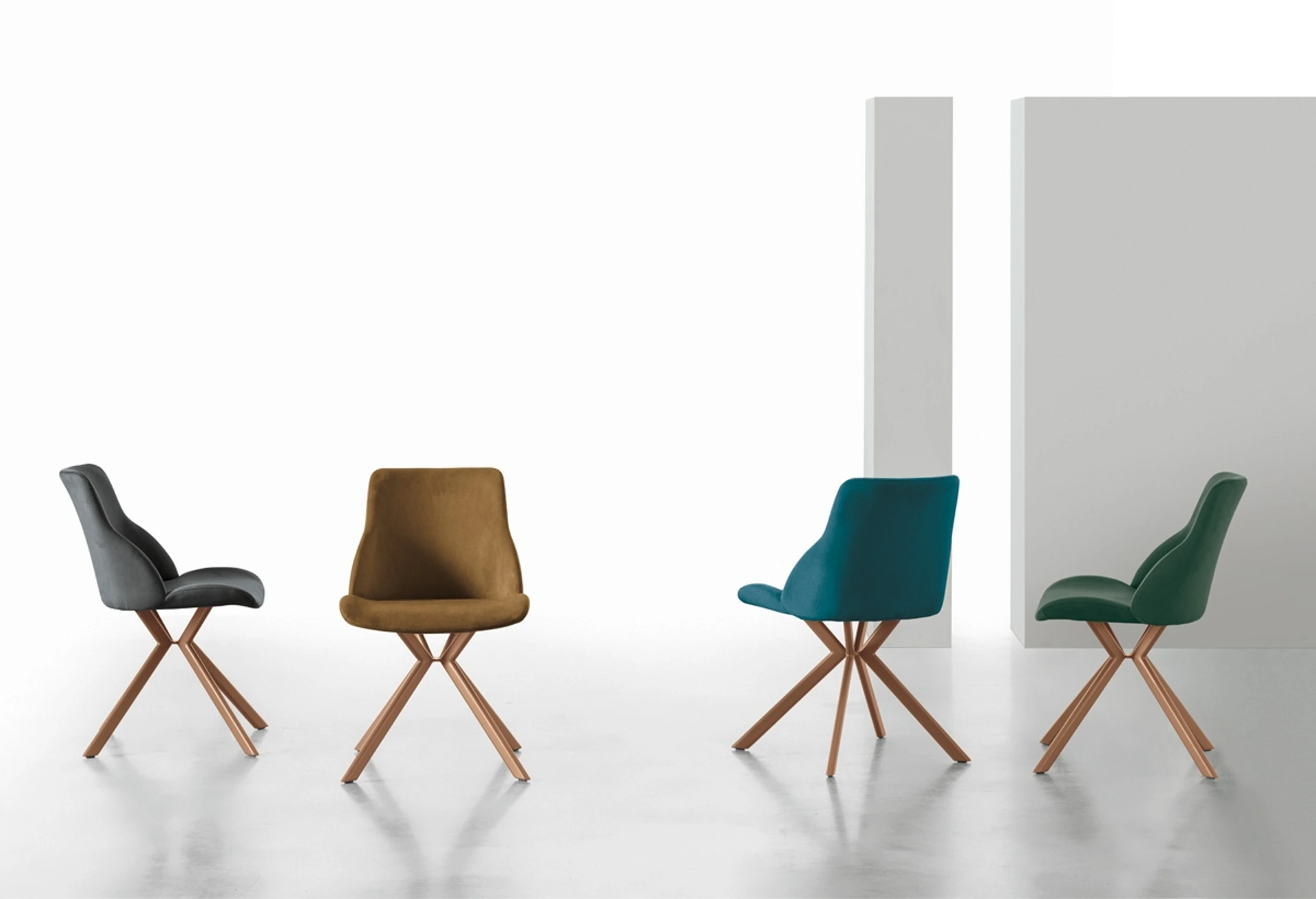 | Materiale: | Struttura in metallo verniciato, seduta rivestita in Gentle-Touch o microfibra effetto velluto |