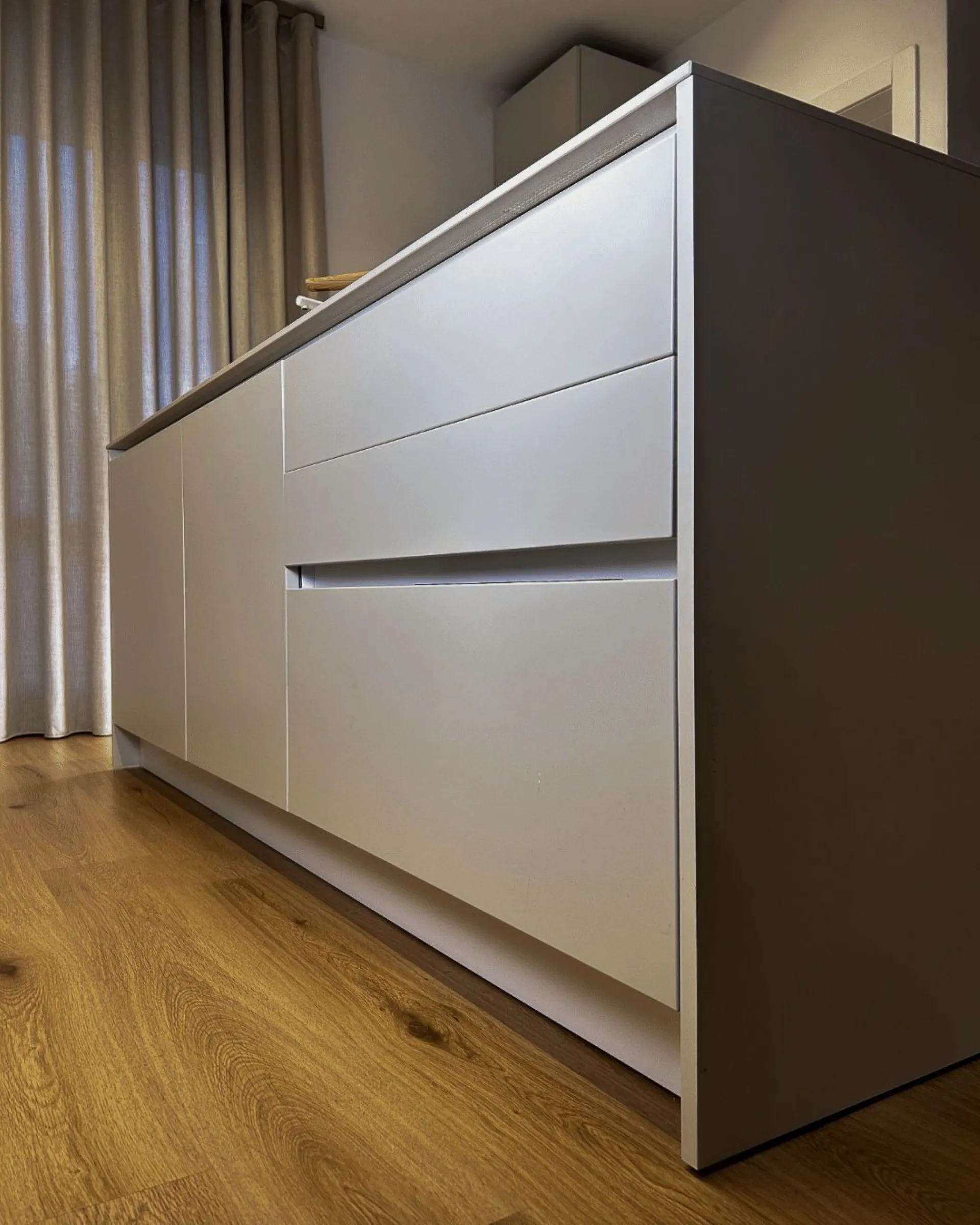 Scopri la nostra cucina lineare moderna con isola a Poggio Rusco. Design innovativo, materiali di qualità e funzionalità su misura per te.