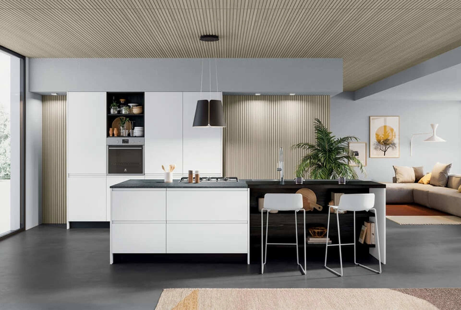 Per le tue esigenze di arredamento a Modena, Mantova, Ferrara, la cucina Fly Composizione 01 è una soluzione ideale. Offriamo consulenza personalizzata e servizi di installazione professionale in queste e altre località. La composizione moderna ad isola di Prima Cucine è un modello moderno a isola dall'estetica pulita e raffinata. Si caratterizza per il frontale liscio privo di maniglie, dotata di un'impugnatura discreta e funzionale, che dona un aspetto moderno e attuale. Le ante hanno uno spessore robusto di 23 millimetri e sono realizzate con materiali di alta qualità come particelle di legno o MDF, offerte in una varietà di finiture come laccate (opache, lucide, metallizzate), in PET o melaminico, con nuance neutre e armoniose. Per un'esperienza d'acquisto senza pensieri, il nostro team offre supporto qualificato, consegna e montaggio professionale in comuni come Modena, Mantova, Ferrara e nelle zone limitrofe.