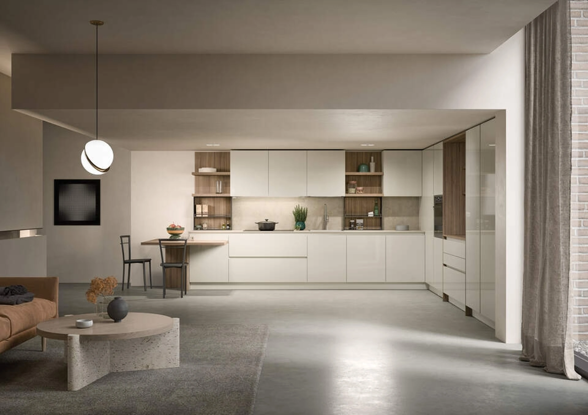 Le Cucine Moderne dell'azienda Prima Cucine possiedono un generale equilibrio tra mood moderno, innovazione tecnica, funzionalità e originalità. Se vuoi ordinare una soluzione in laccato lucido tra le diverse proposte ad angolo, l'alta componibilità della Cucina Moderna angolare Luce Composizione 05 di Prima Cucine ti darà modo di esprimere le tue necessità d’arredo. Tra i differenti modelli presenti nel catalogo Prima Cucine, la cucina in foto rende lo spazio altamente fruibile e danno la possibilità di vivere gli ambienti domestici appieno.