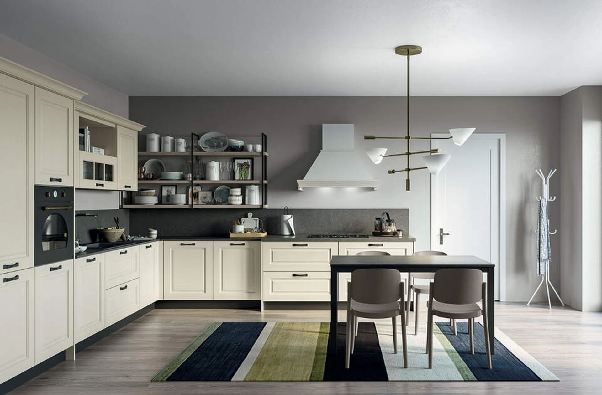 La composizione Maya 04 di Prima Cucine incarna una sintesi perfetta tra estetica classica e funzionalità contemporanea. Le sue ante sono realizzate con un robusto telaio in massello di frassino e un pannello in MDF impiallacciato frassino, entrambi trattati con una laccatura a poro aperto. Questa finitura opaca non solo valorizza le intrinseche venature naturali del legno, ma ne assicura anche una resistenza superiore nel tempo. Il sistema offre un'elevata modularità, permettendo un'ampia personalizzazione attraverso la scelta di piani di lavoro in quarzo o altri materiali di alta gamma, facilitando la creazione di configurazioni uniche e adatte a ogni esigenza. Ogni elemento è studiato per offrire massima flessibilità e durabilità, garantendo un'integrazione ottimale in diversi contesti abitativi.