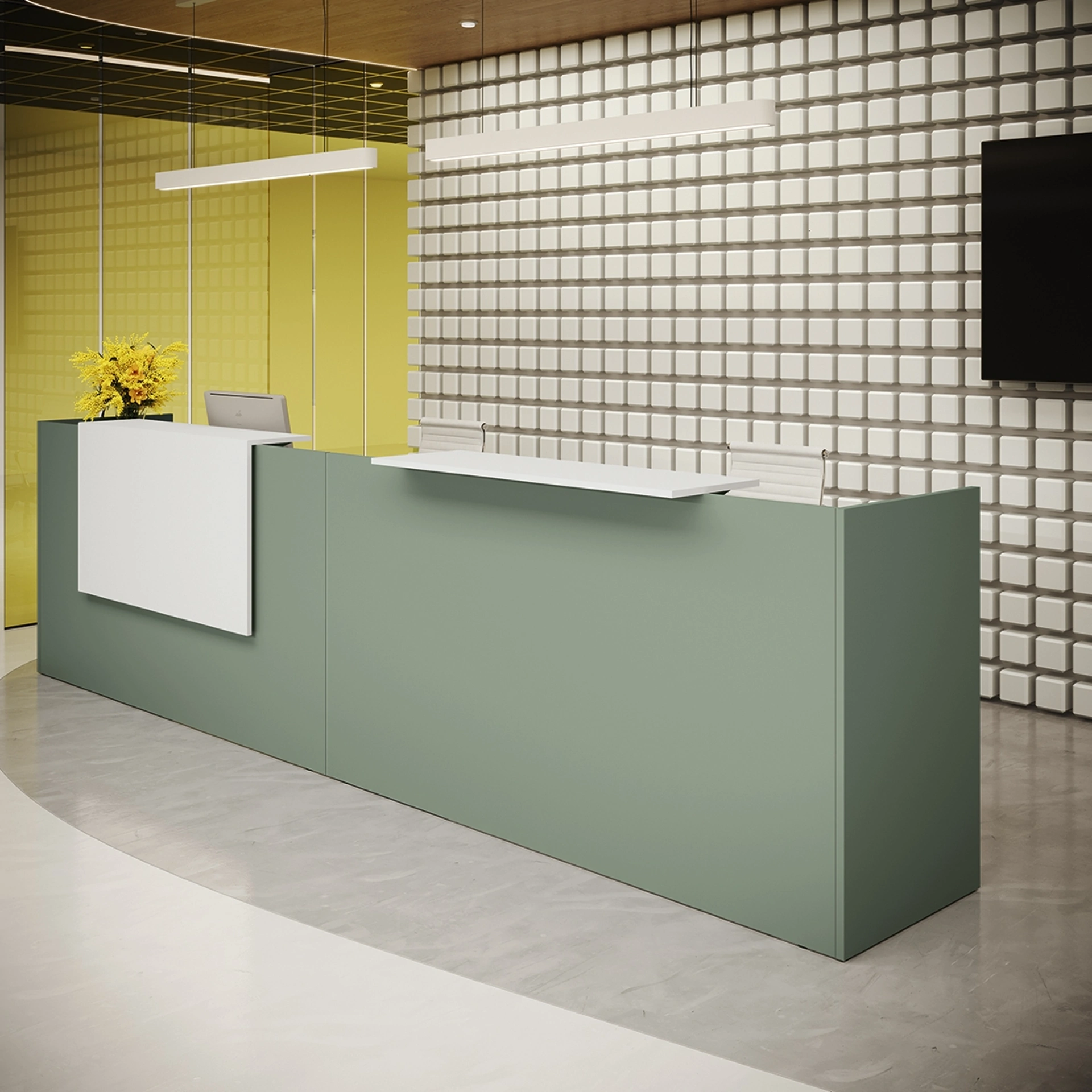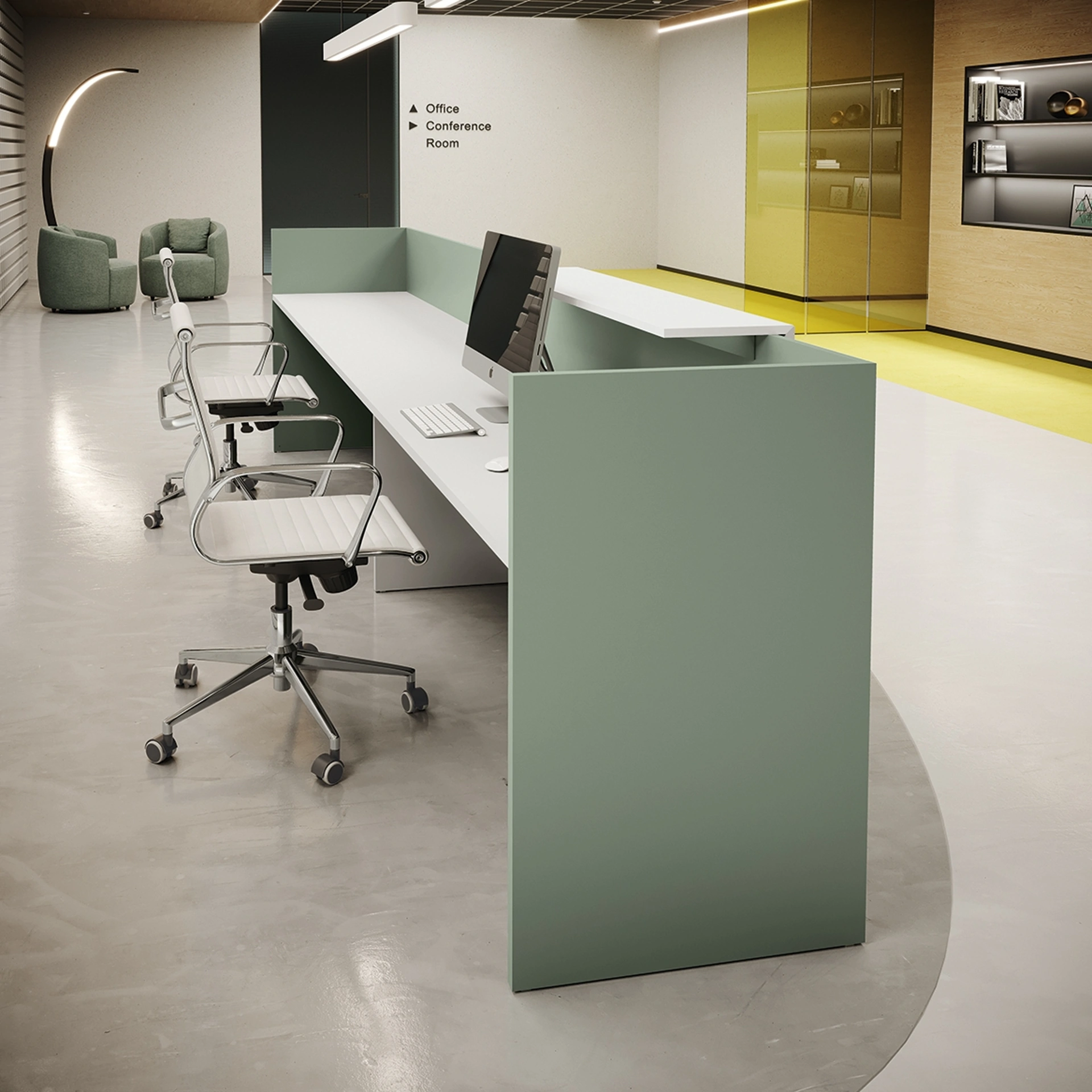 Quali sono i vantaggi di scegliere la Reception Color 03 per il mio ufficio?Scegliere la Reception Color 03 significa optare per un prodotto di design e funzionalità, ideale per creare un'ottima prima impressione. Beneficerai anche dei nostri servizi completi, dalla progettazione 3D al montaggio incluso e alla possibilità di pagamenti rateizzati.