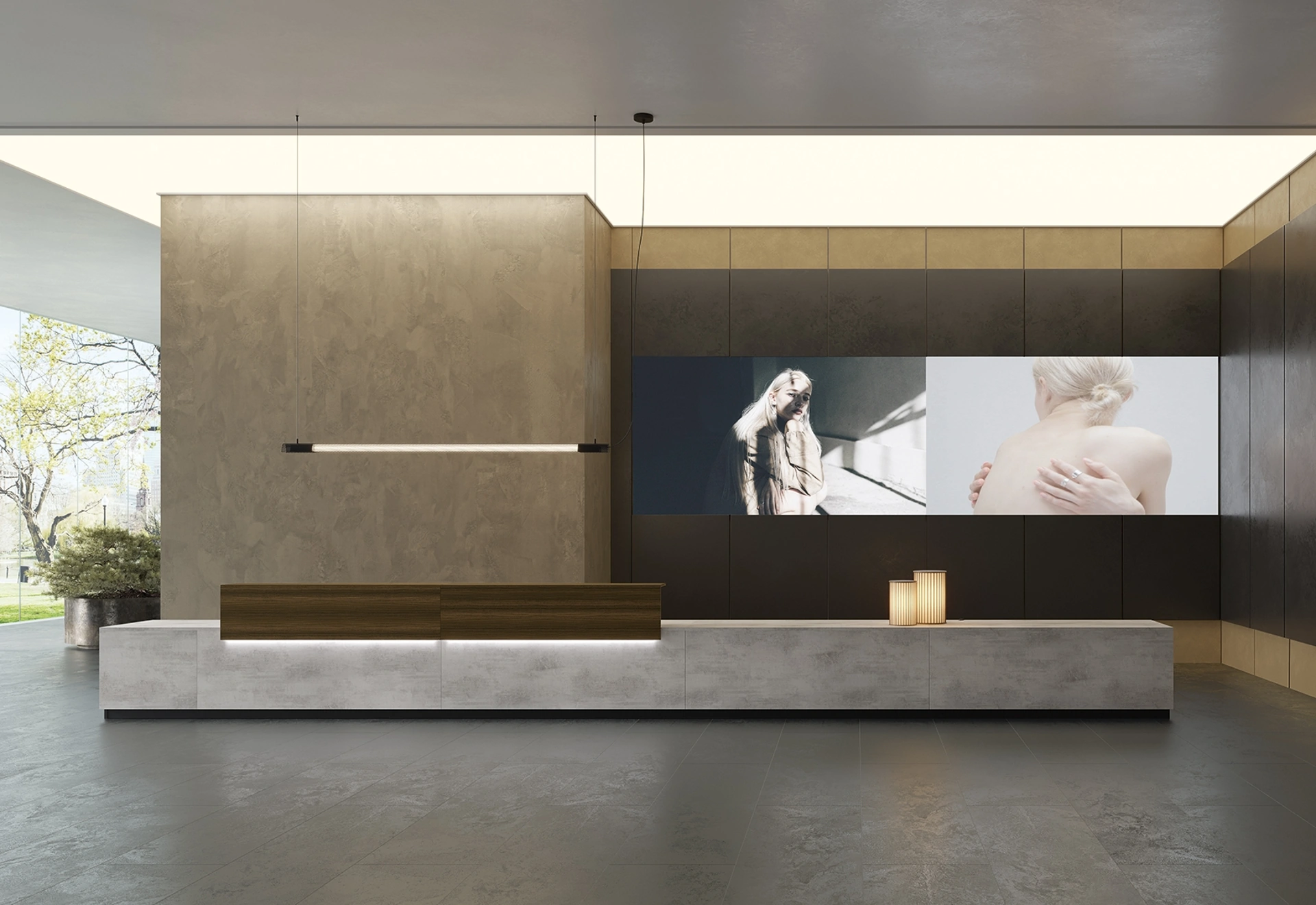 Quali caratteristiche distintive offre la reception Class 02 di Colombini Office?La Reception Class 02 di Colombini Office è progettata per unire funzionalità ed estetica negli ambienti professionali. È configurabile con diverse soluzioni e materiali, come il laminato, per adattarsi al meglio alle tue esigenze di spazio e stile.