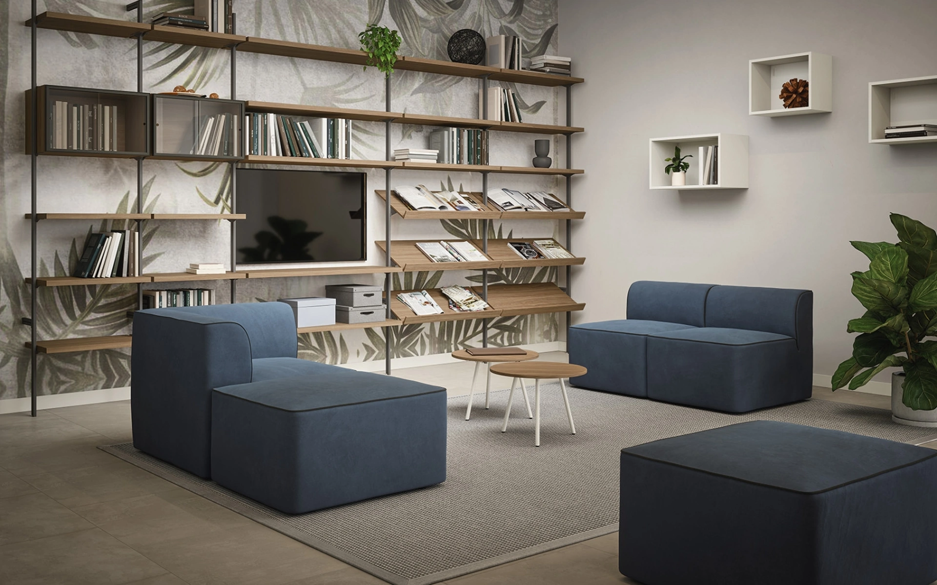 Quali ambienti sono ideali per la Seduta per Ospiti Divano Madrid?Questo divano è specificamente progettato per aree di attesa, sale riunioni informali o uffici direzionali. Offre comfort e un design accogliente, ideale per ospitare clienti o collaboratori in un ambiente professionale.